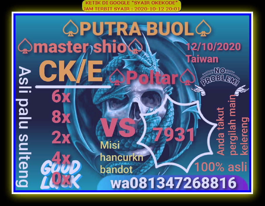 Forum syair hk malam ini syair hk syair hongkong malam ini kode syair hk. Syair Togel Singapore Rabu 09 Juni 2021. Permainan togel online membuat banyak bettor yang penasaran dalam melakukan pemasangan angka terlebih dengan hadiah cukup besar yang disediakan oleh sebuah situs. Syair Togel Hongkong Jumat 21 Mei 2021. 11 Maret 2020 at 1034 am. Kode Syair taiwanpools Hari Ini Terlengkap. Gambar update per 5 menit sekali jadi kalian harus sering untuk cek forum syair taiwan hari ini atau kode syair taiwanpools hari ini terlengkap dari kami. Selanjutnya era sekarang ini syair-syair togel Menjadi salah satu apa ya namanya em semacam trawangan angka keluaran togel.
